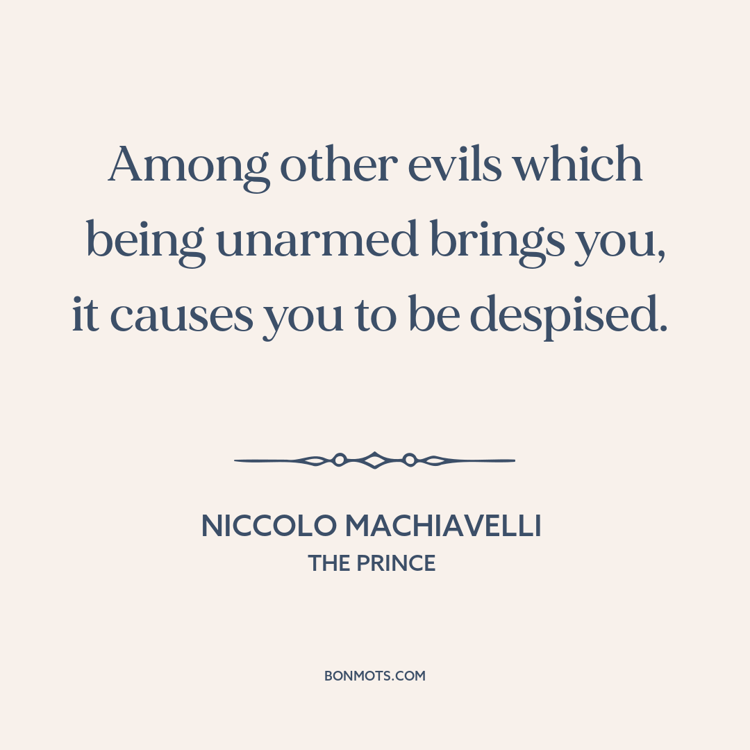 Among other evils which being unarmed brings you, it causes you to be despised.