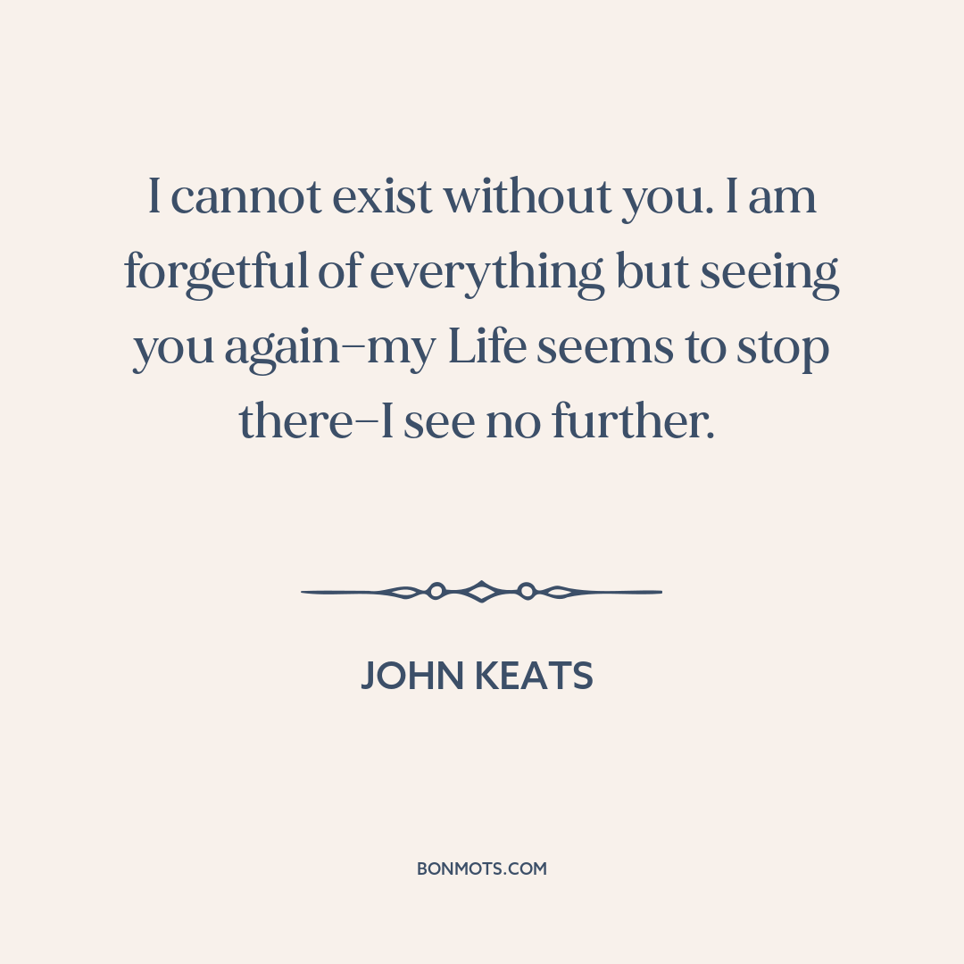 I cannot exist without you. I am forgetful of everything but seeing you again—my Life seems to stop there—I see no further.