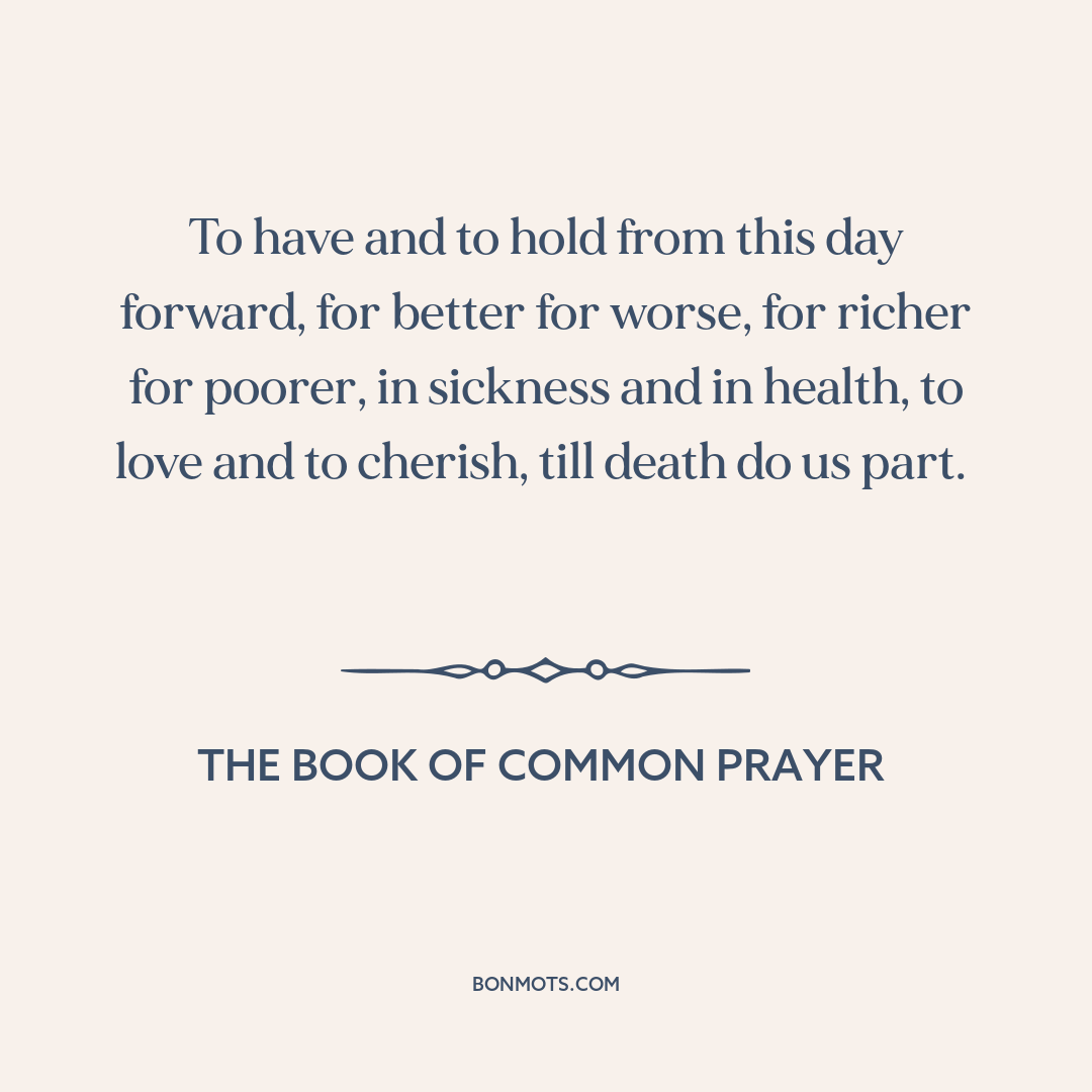 To have and to hold from this day forward, for better for worse, for richer for poorer, in sickness and in health, to love and to cherish, till death do us part.