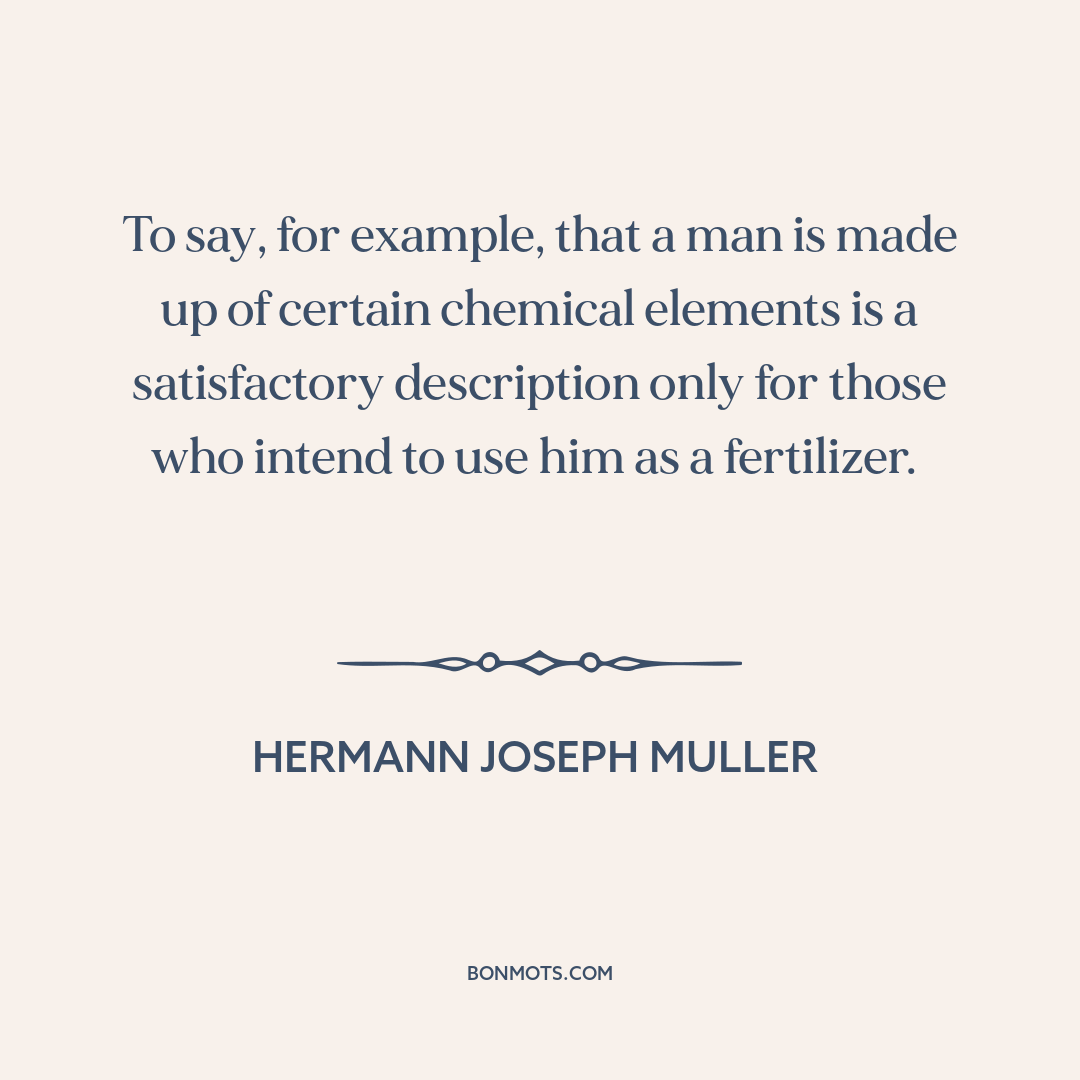 To say, for example, that a man is made up of certain chemical elements is a satisfactory description only for those who intend to use him as a fertilizer.