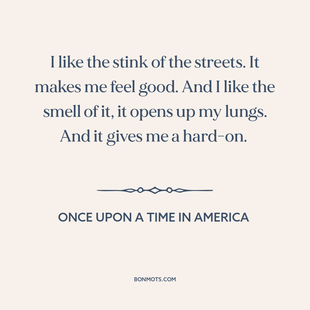 I like the stink of the streets. It makes me feel good. And I like the smell of it, it opens up my lungs. And it gives me a hard-on.